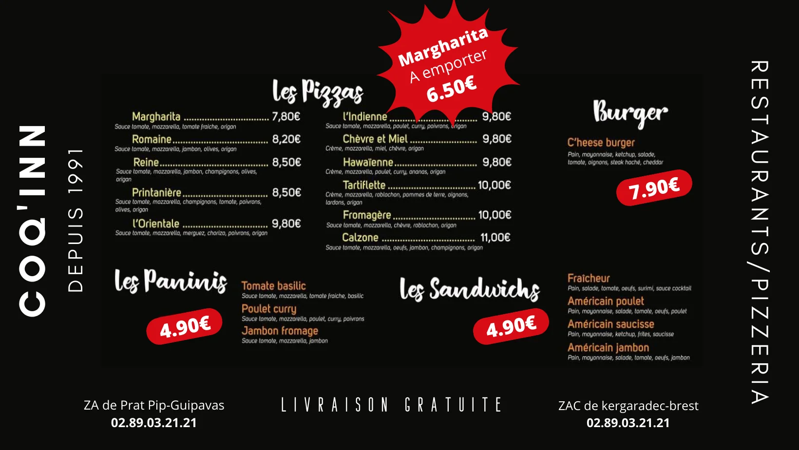 Nous disposons de 2 restaurants. Coq'inn Guipavas :